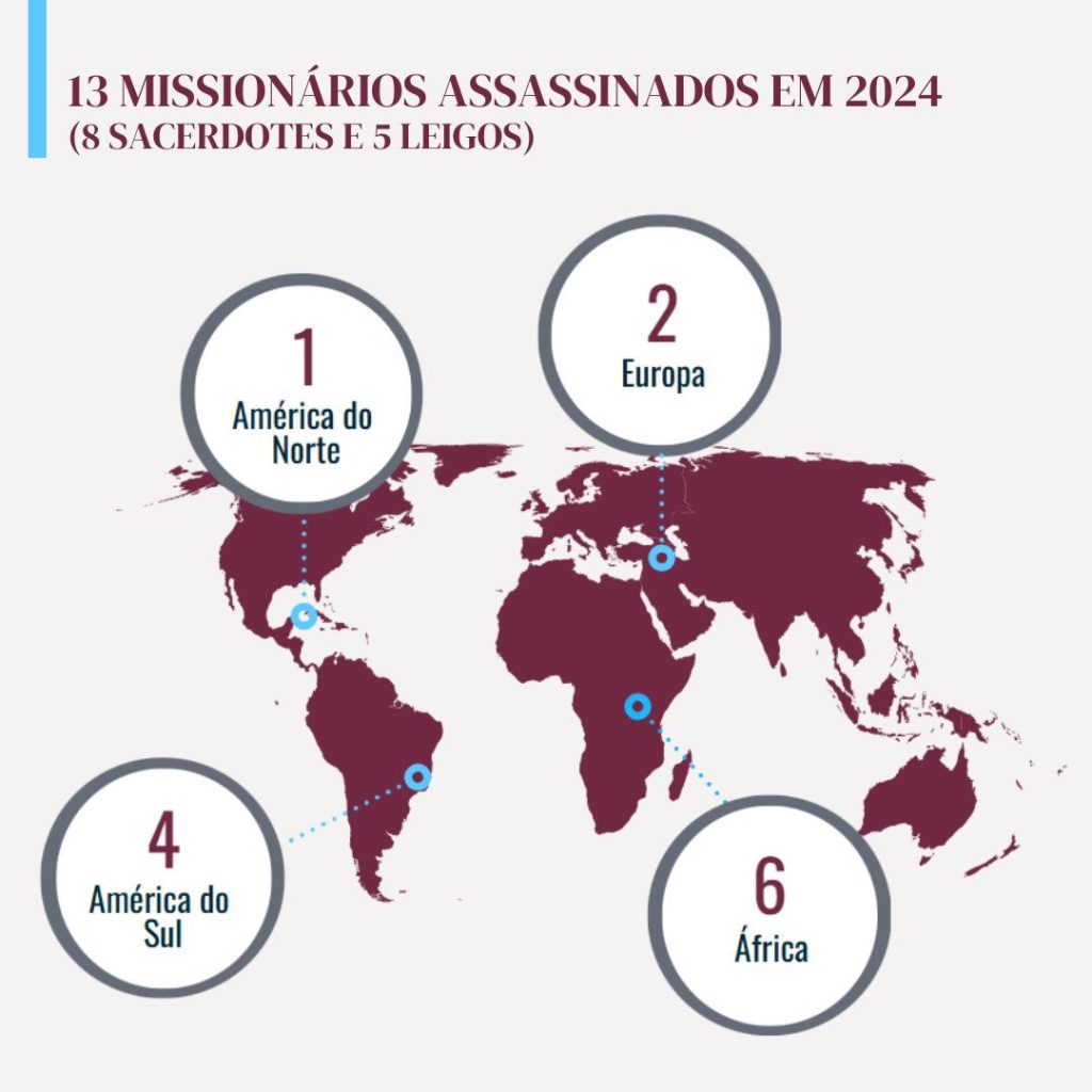 Em 2024, segundo dados verificados pela Agência Fides, foram assassinados 13 “missionários” católicos em todo o mundo, entre os quais oito sacerdotes e cinco leigos. Mais uma vez, a África e a América lideram este trágico recorde, com cinco vítimas em cada continente. Nos últimos anos, as duas regiões têm-se alternado no topo desta dolorosa estatística.
