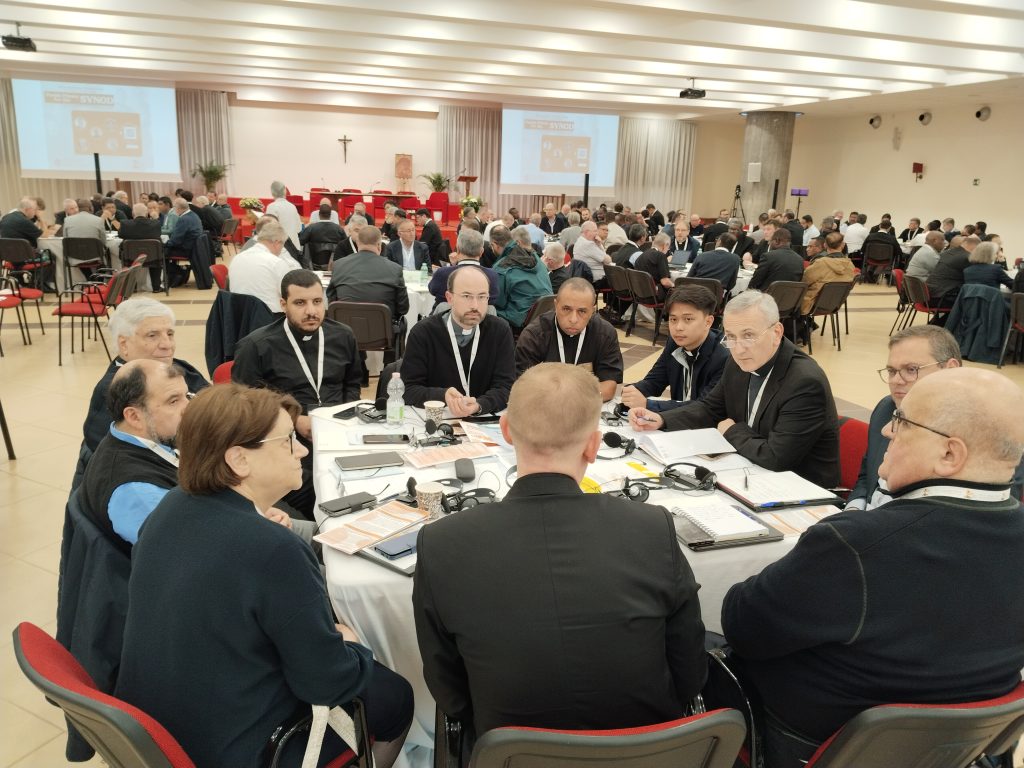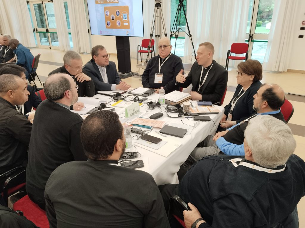 Os dias de trabalho eram intensos e muito preenchidos, mas ricos e fecundos na partilha e no encontro. O pequeno-almoço era servido às 7h e às 8h rezávamos a oração de Laudes para dar início aos trabalhos. Cada um dos três dias de assembleia em Sacrofano era orientado a partir de um dos temas do Relatório de Síntese: O rosto da Igreja Sinodal; Todos discípulos, todos missionários; Tecer laços, construir comunidade. Cada um destes dias começava com uma breve introdução sobre o tema dos peritos deste encontro: D. Pablo Virgilio David (Filipinas); Padre Benedict Ndubueze Ejeh (Nigéria); Mons. Tomáš Halík (República Checa); Padre Gilles Routhier (Canadá) e a Prof. María Lía Zervino (Argentina). A esta proposta introdutória seguia-se um tempo de oração pessoal onde cada um era convidado a pensar, à luz do Espírito, aquilo que pretendia partilhar no grupo. O Santíssimo Sacramento era exposto na igreja e os participantes escolhiam o lugar onde pretendiam fazer a sua reflexão. Uns dirigiam-se para a igreja, outros para o jardim ou para a mata. Este tempo era fundamental para situarmos o âmbito da nossa reflexão e da nossa partilha. Não era um debate de ideias ou um exercício académico, mas um tempo de discernimento a partir de Jesus, na força do Espírito, para que pudéssemos realizar a vontade do Pai.