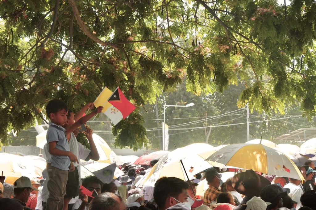 Quando, no dia 9 de setembro, o Papa Francisco aterrou no Aeroporto Internacional Nicolau Lobato, o povo de Timor-Leste já se encontrava, há várias horas de pé, como que de sentinela, cobrindo a beira das estradas de sorrisos, acenando com a bandeira de Timor-Leste e do Vaticano. Sob o sol escaldante do meio-dia, crianças e anciãos tentavam proteger-se, com os guarda-chuvas brancos e amarelos. Foi impressionante, assim que se pressentiu a passagem de Francisco, os guarda-chuvas recolheram-se automaticamente para que todos conseguissem ver o sucessor de Pedro passar e foi com muita emoção, lágrimas e alegria que lhe dissemos: “Bem-vindo!”.
